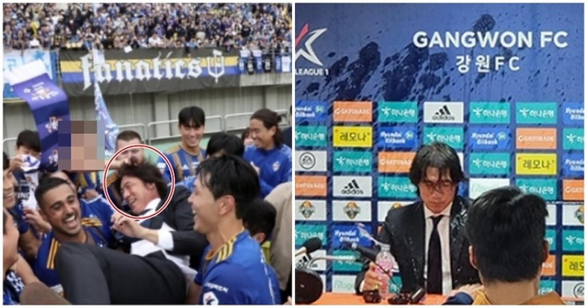 홍명보 감독, 물폭탄 맞고 머리채 잡힌 이유 ?