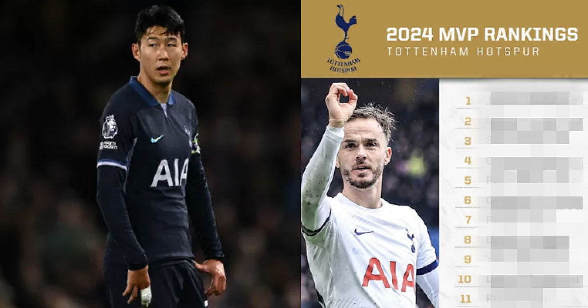 최근 ESPN이 발표한 2023~2024시즌 프리미어리그 빅6 팀별 MVP 순위에서 토트넘의 시즌 MVP로는 제임스 매디슨이 1위, 미키 판 더 펜이 2위로 선정되었고, 손흥민은 3위로 밀려났습니다. 이에 현지 팬들은 손흥민이 MVP 1위가 아니라는 점에 분노를 표했습니다.