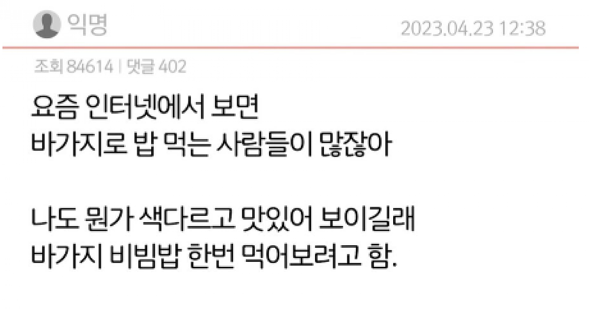 아동학대 논란 바가지 비빔밥 킬링타임 유머 0 10 0 2024.03.20 23:34 링크복사 큰 잘못은 아닌데 하필 바가지 ㅋㅋㅋㅋ 양푼이로 하는게 더 좋다~ 하면 되지 혼낼 거 까진 아닌듯 링크복사 0 킬링타임 0 0