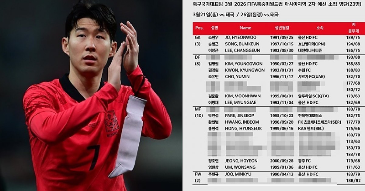 [오피셜] 대한민국 축구 국가대표 명단 (3월 월드컵 예선) 팔라스 축구 0 3 0 2024.03.11 11:47 링크복사 오피셜 대한민국 축구 국가대표 명단 발표! 링크복사 0 팔라스 0 0