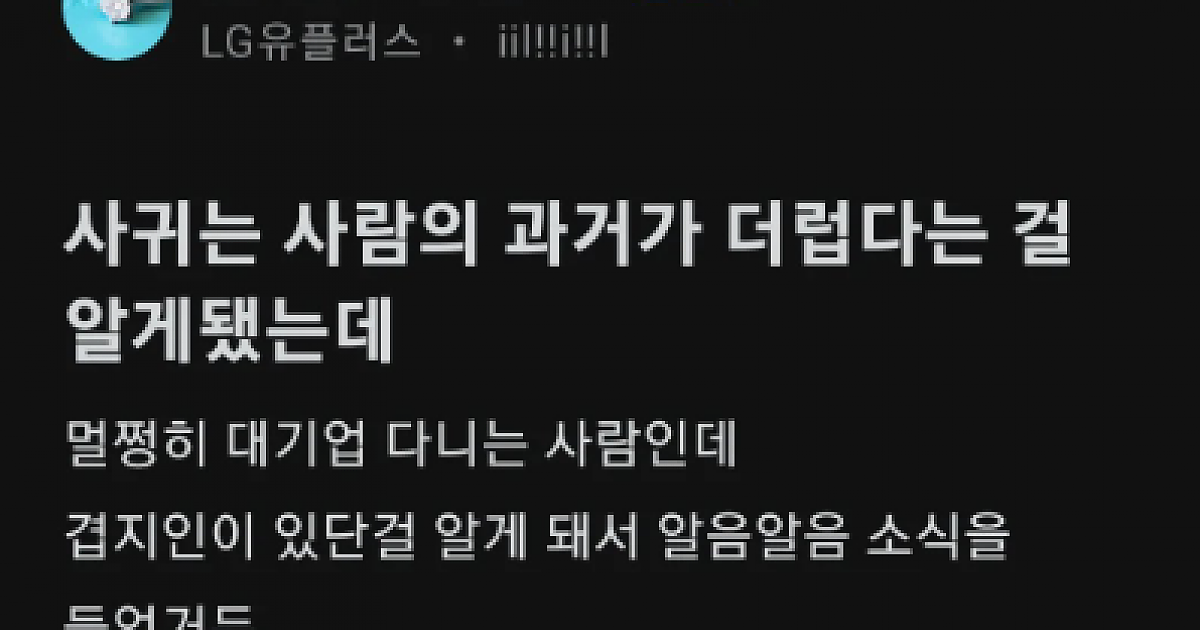 사귀는 사람의 과거가 더러운 걸 알게된 직장인 킬링타임 유머 0 11 0 2024.03.10 19:18 링크복사 와.. 이건 진짜 뭔가 긴가민가하네... 상대쪽이 돈도 더 많은데.... 진짜 사람이 바뀐건가.. 링크복사 0 킬링타임 0 0