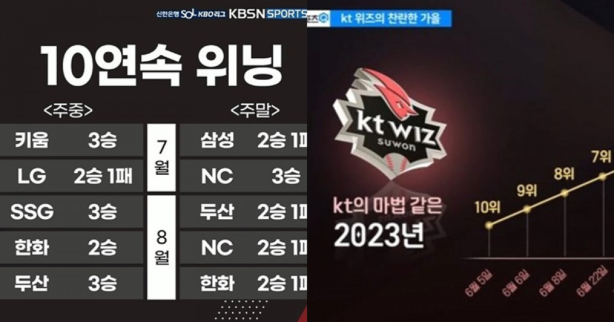 10위부터 한국시리즈까지, 2023시즌 KT 위즈 리뷰 백만수르 야구 0 1 0 2024.03.02 09:58 링크복사 위즈팬들에겐 드라마틱 할 수 밖에 없었던 2023시즌... 링크복사 0 백만수르 0 0