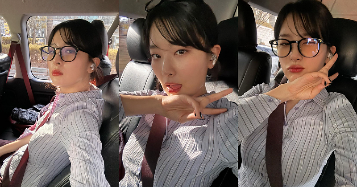 '세로 줄무늬 셔츠와 뿔테안경' 일상 자체가 화보인 슬기.JPG