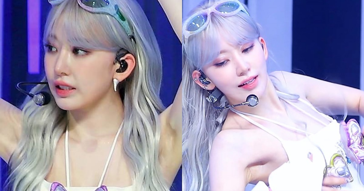 흰 탑 가슴에 달랑이는 나비 때문에 더 시선 집중되는 르세라핌의 '사쿠라'.gif