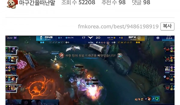 장로 한타 대승하고도 포탑한테 죽어서 경기말아먹은 오늘자DNF 하이라이트
