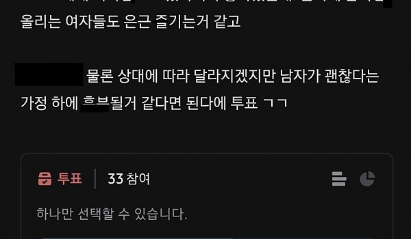 남자들의 ㄸ감이 되는 것에 대한 여자들 투표 결과