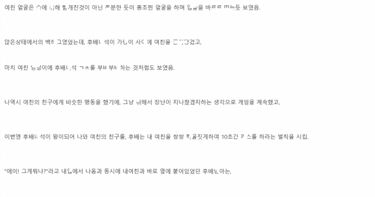 왕ㄱ임 하다가 후ㅂ가 여친이랑 노는걸 보고만 있던 남친..그후 생긴 일