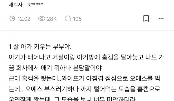 홈캠보고 아내한테 미안해진 남편