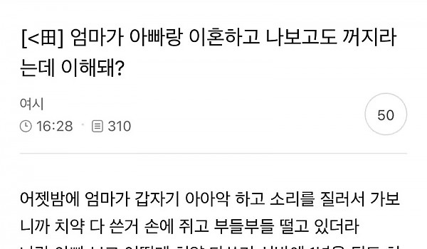 엄마가 아빠랑 이혼하고 나보고도 꺼지라는데 이해돼?