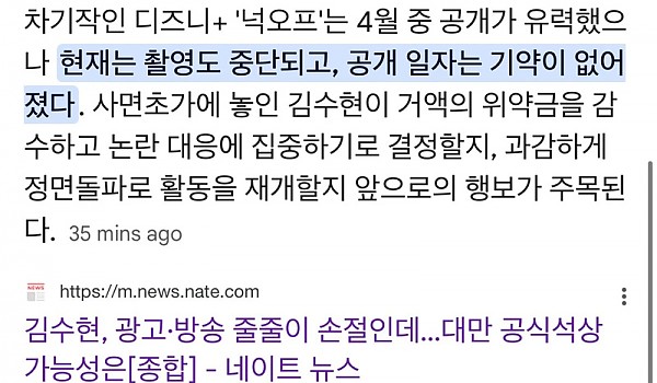 김수현 출연작 디즈니플러스 '넉오프' 결국 촬영중단