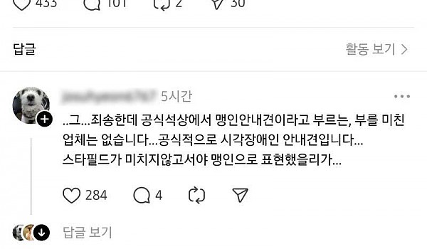 스타필드 맹인 안내견 출입금지래..