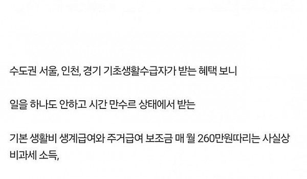 수도권 기초생활 수급자 근황