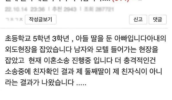 둘째딸이 친자 불일치로 나왔던 아재근황.jpg