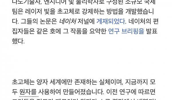 문과는 이해 못하는 세계최초 빛으로 만든 초고체 근황