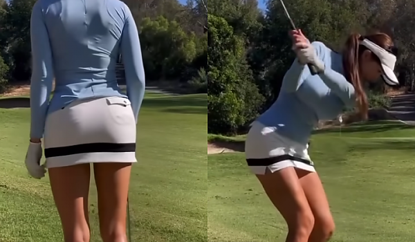 쪼그려 앉았더니 그만 보여지고만 미녀 골퍼