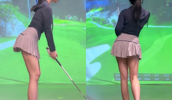 아름다운 미모의 여성 골퍼가 보여주는 시원한 스윙 수준