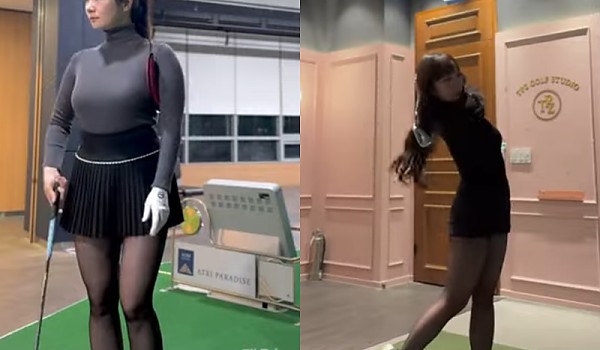 쪼그려 앉았더니 그만 보여지고만 미녀 골퍼