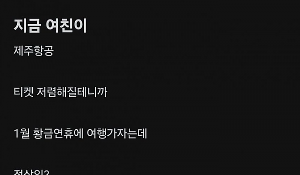 제주항공 곧 싸질꺼니까 1월에 여행가자는 여친.blind