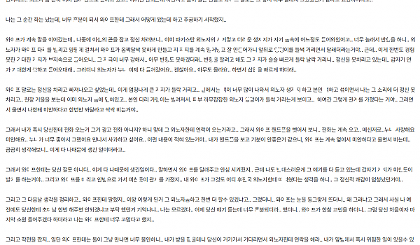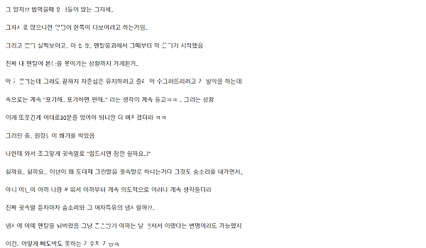 바ㄹ난 마ㄴ라 때문에 처ㅎ한테 ㅇ정을 푼 썰