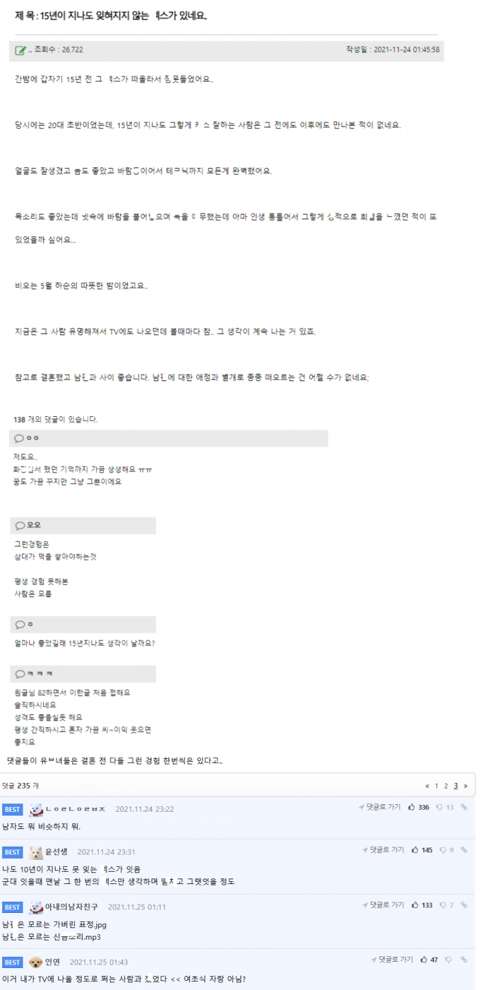 어느 ㅇ정 많은 여자가 말하는 15년이 지나도 잊혀지지 않는 ㅅㅅ