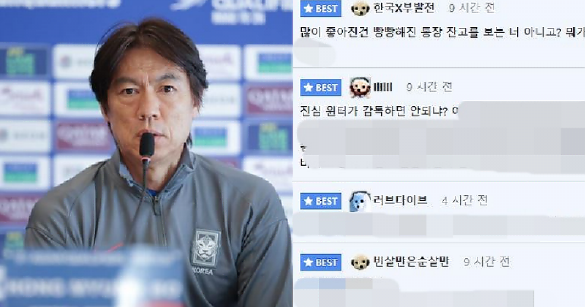 팔레스타인과 또다시 무승부, 홍명보 감독의 인터뷰를 본 펨코인들의 반응.jpg