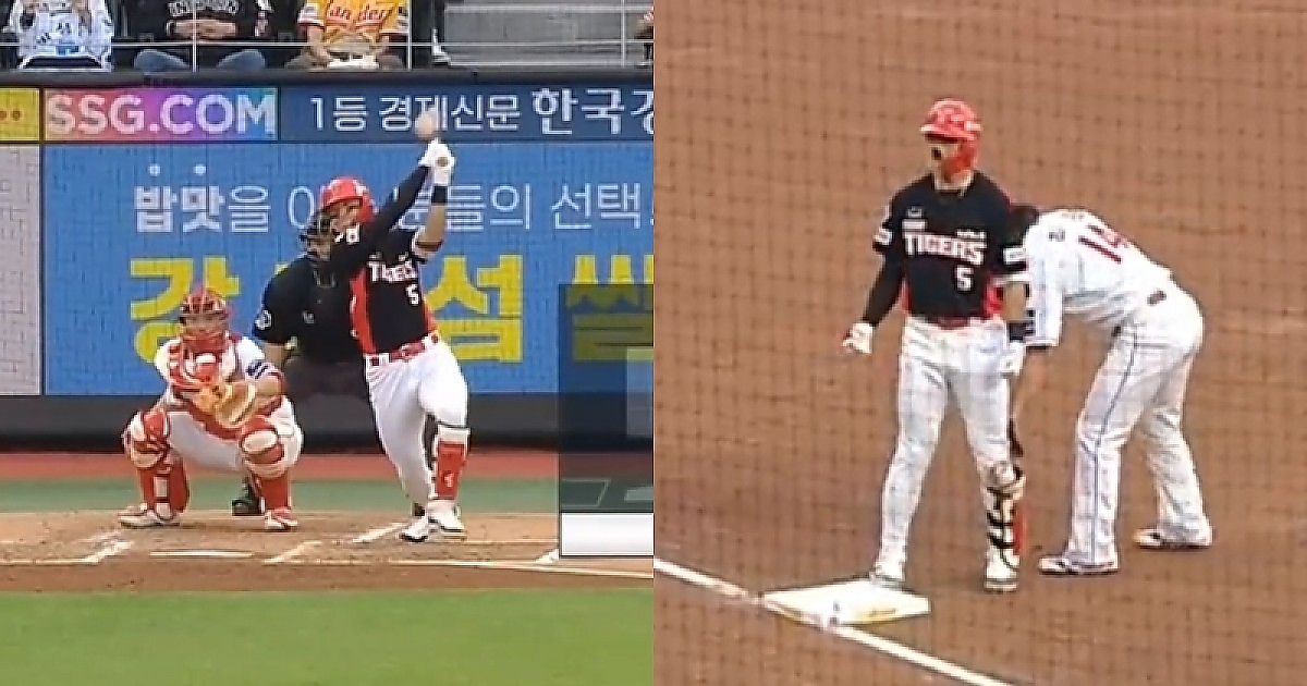 KIA 김도영, 화끈한 3루타친 후 세리머니 하다가 안타까운 상황 벌어졌다 (영상)