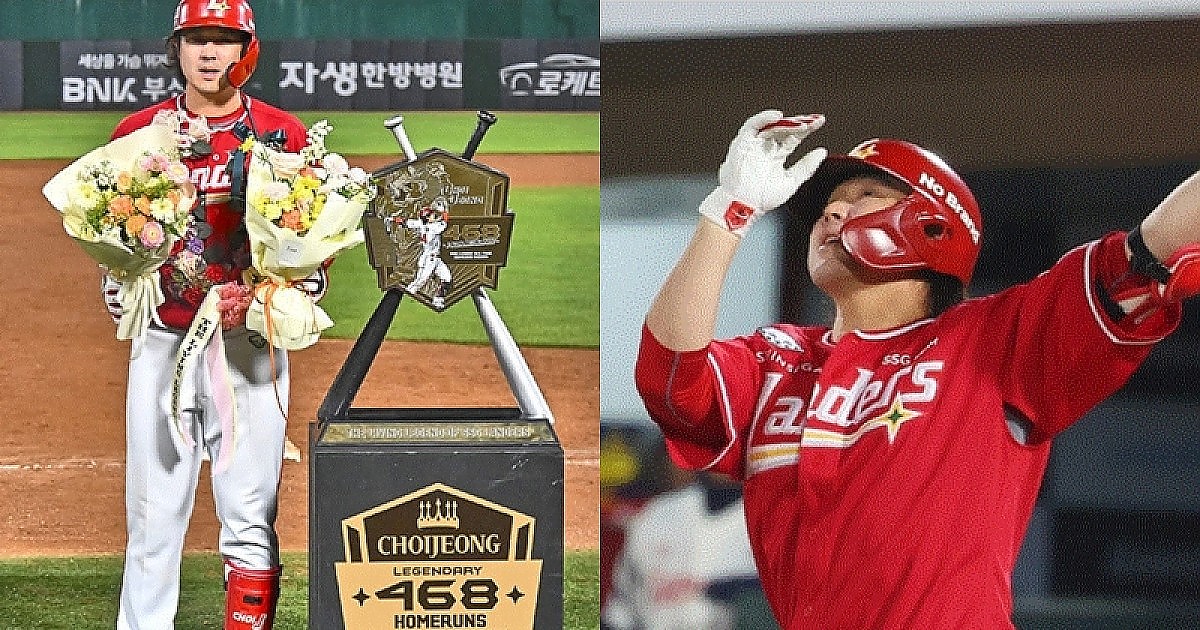 최정이 통산 468번째 홈런을 치며 '국민타자' 이승엽의 467홈런 기록을 넘어서