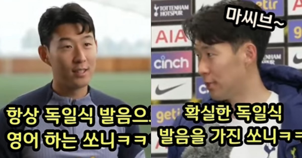 손흥민의 매력적인 독일식 발음으로 영어하는 모습 (영상)
