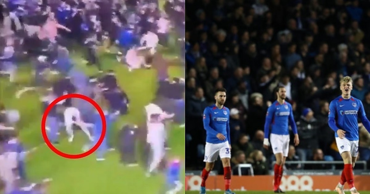 홈 팬들이 상대 선수를 폭행한 것으로 보이는 장면이 나왔다고...