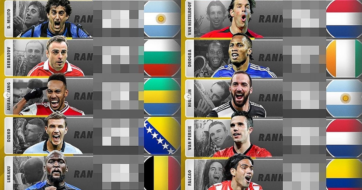 한 매체에서 선정한 21세기 스트라이커 30인 수준 (순위 포함)