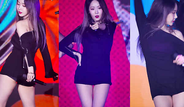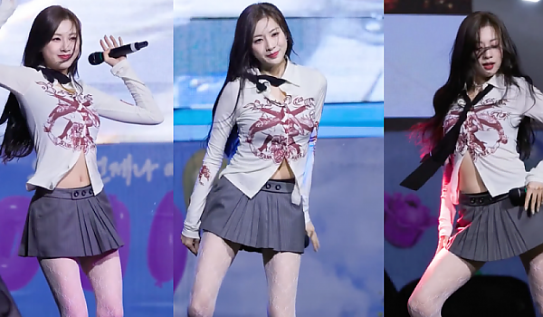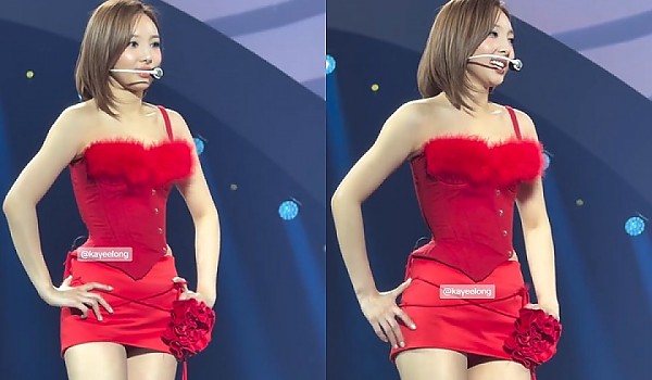 빨간 튜브탑에 흰 미니스커트 의상으로 안무 선보이는 아이돌 (영상)