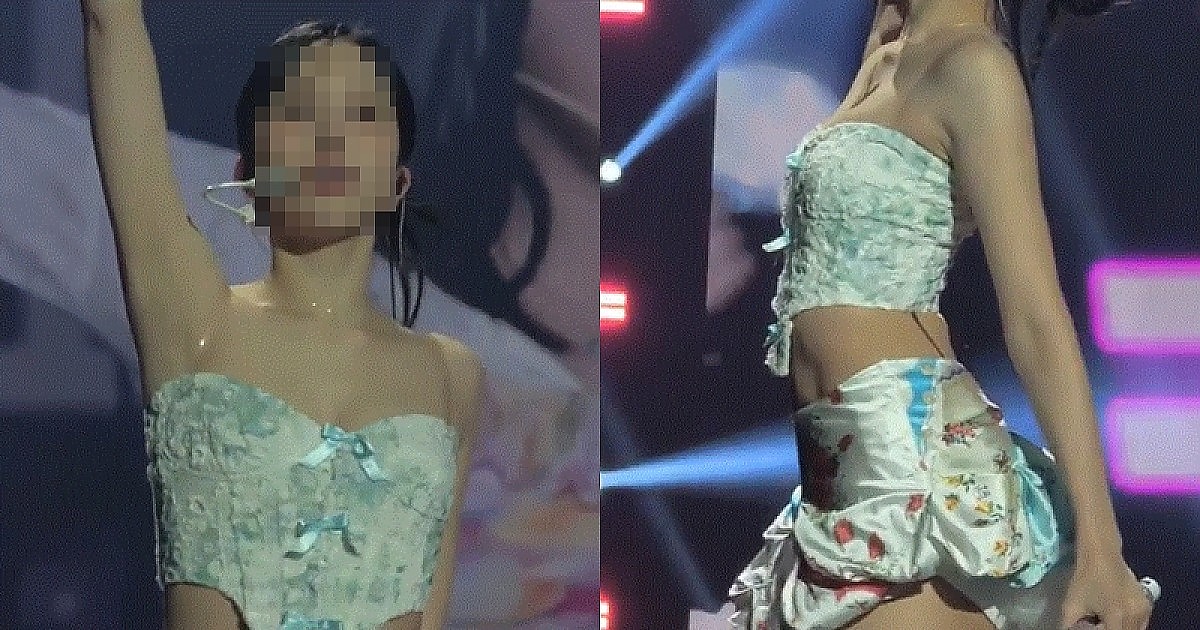 역대급 짧은 꽃무늬 치마에 허벅지에 끈 두르고 방방 뛰면서 무대 선보이는 아이돌..ㄷㄷ