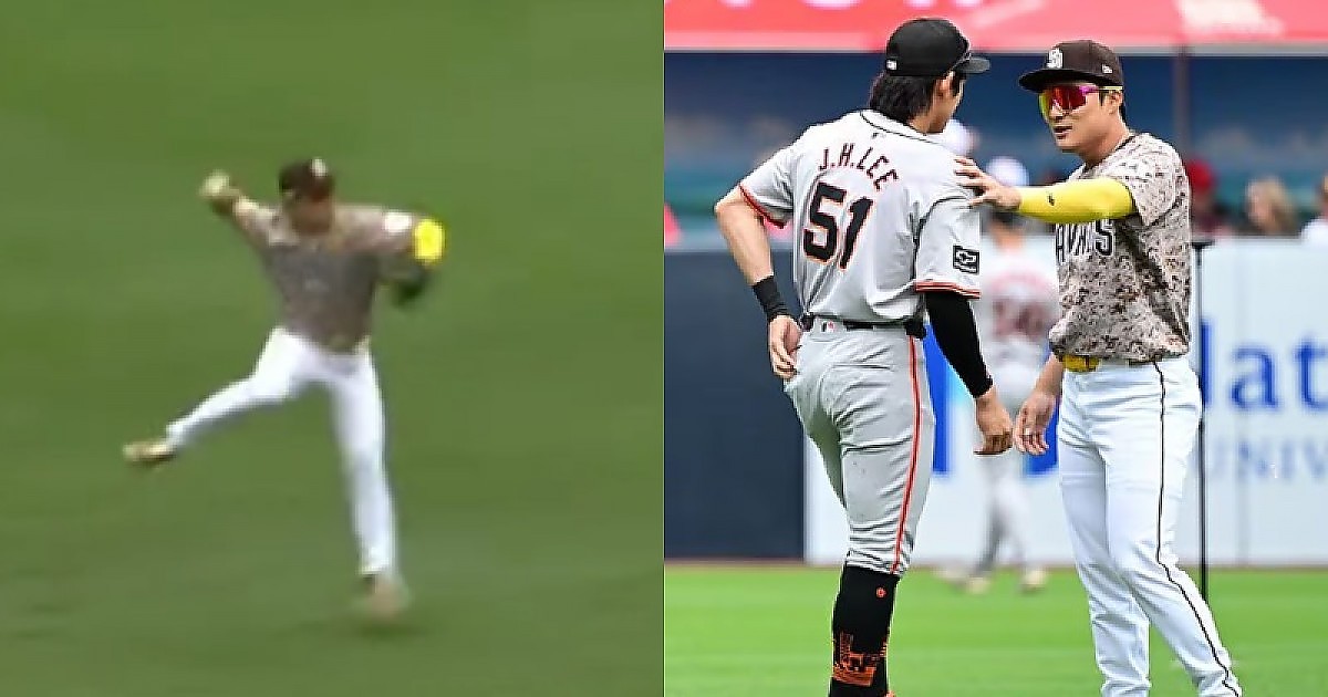 '미친 수비'로 주자 '이정후'를 잡아내는 멋진 플레이의 '김하성'(영상)
