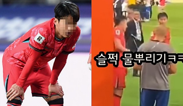 인터뷰 중 누군가 물을 뿌리자 놀란 손흥민의 예상치 못한 반응 (영상)