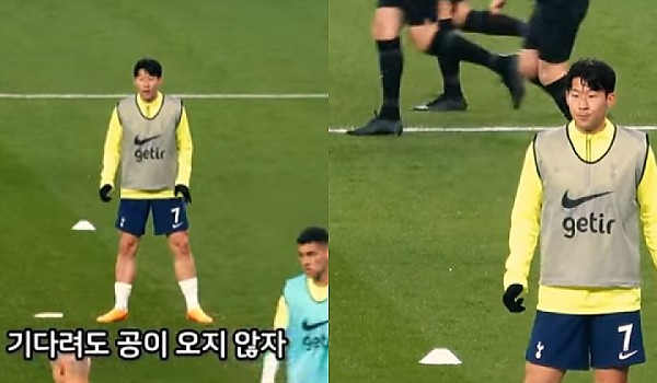 토트넘 훈련중 선수들이 패스를 안주자 나온 손흥민의 역대급 귀여운 반응 (영상)