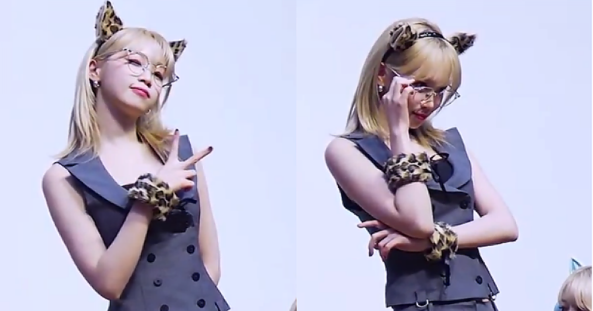 회색 오피스룩, 아기치타 머리띠 르세라핌 김채원
