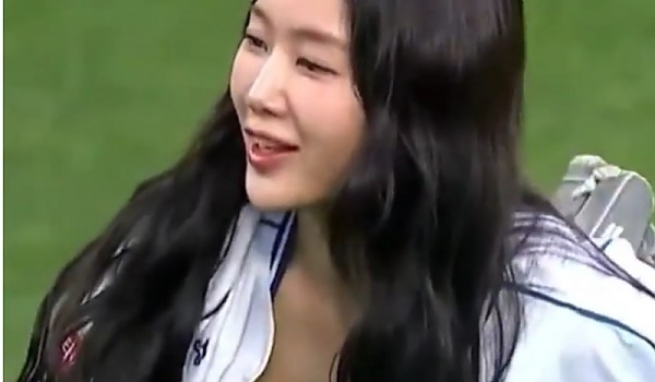 시구하는 도중 야구유니폼 사이로 숨겨왔던 볼륨감을 뽐낸 소유(+직캠)