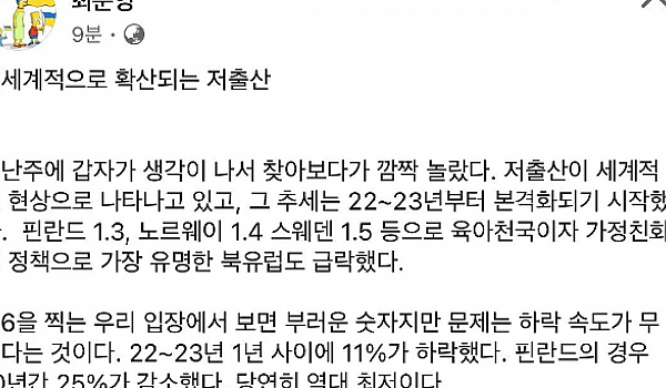 전세계적으로 확산되는 중이라는 저출산