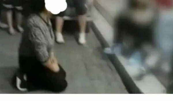 담배피는 중학생 앞에서 무릎꿇은 할머니