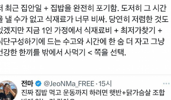 최근 1인가구들은 집밥을 점점 포기함