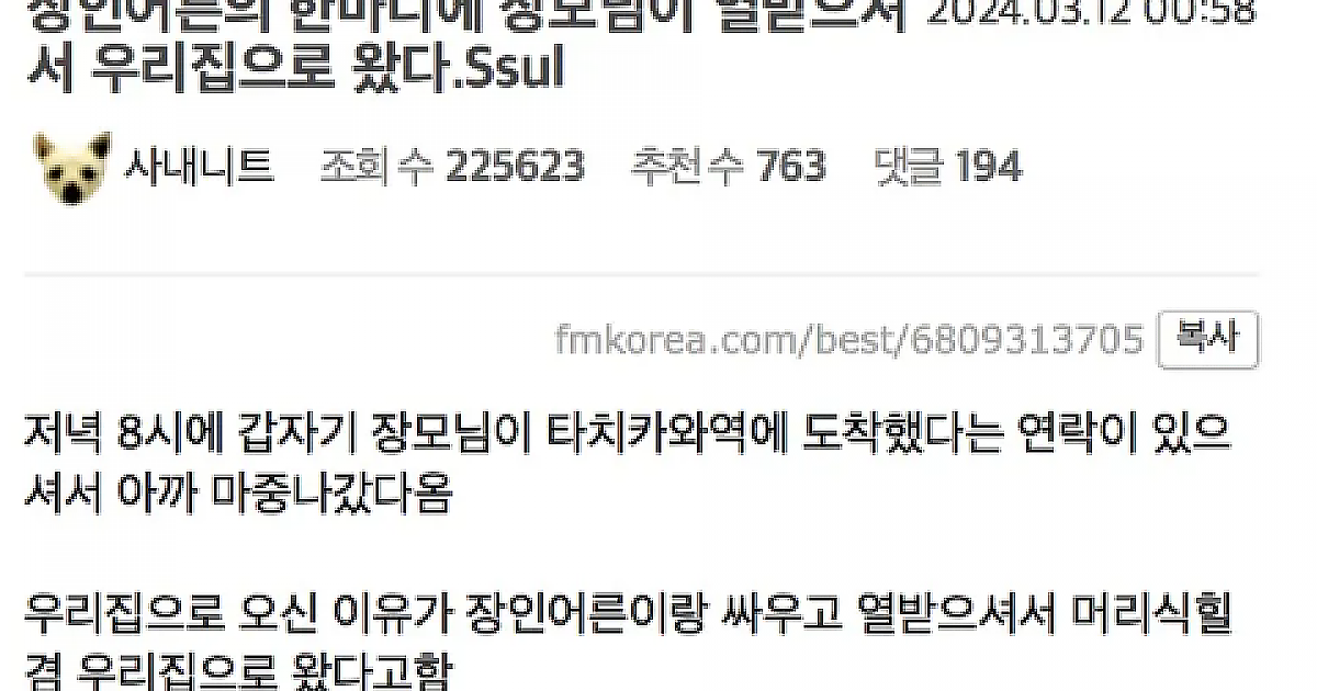 장인어른의 한마디에 장모님이 열받아서 사위집으로 온 이유