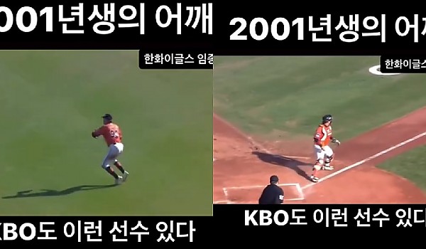 MLB급 어깨를 가진 빨랫줄 송구하는 KBO 외야수.gif
