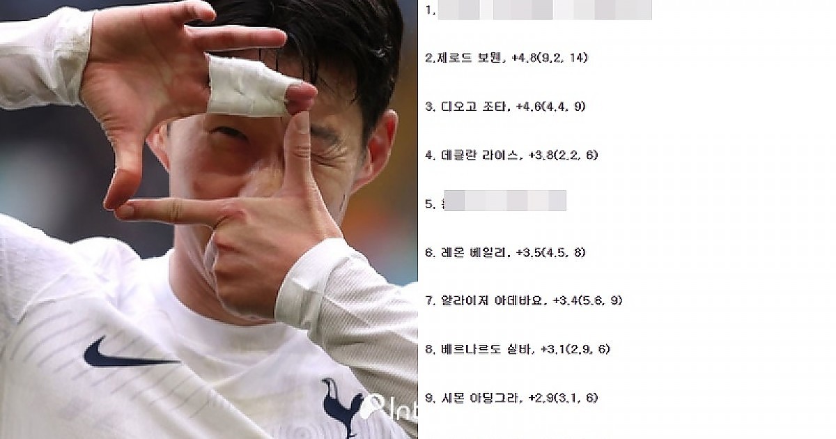손흥민 올 시즌 PL '베스트 피니셔' 등극...황희찬 5위