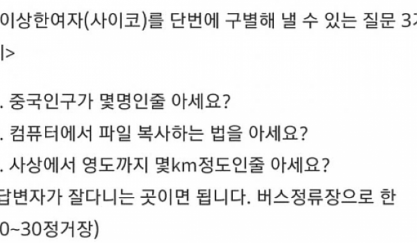 이상한 여자 단번에 구별해내는 질문이라고 여초에서 떠도는 글