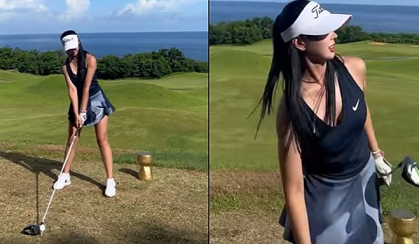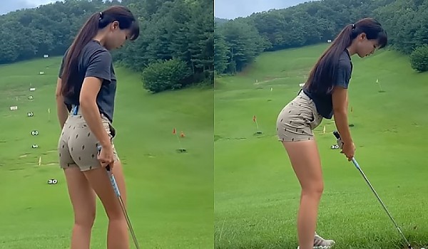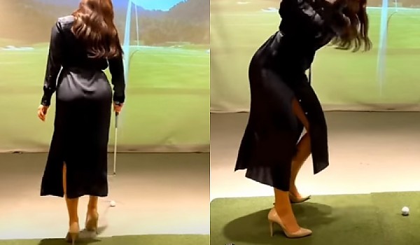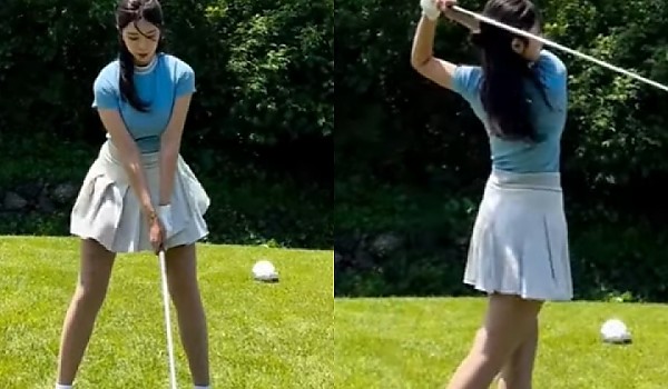 하이힐 신고 스윙해도 흔들리지 않는 아름다운 아이언샷(영상)