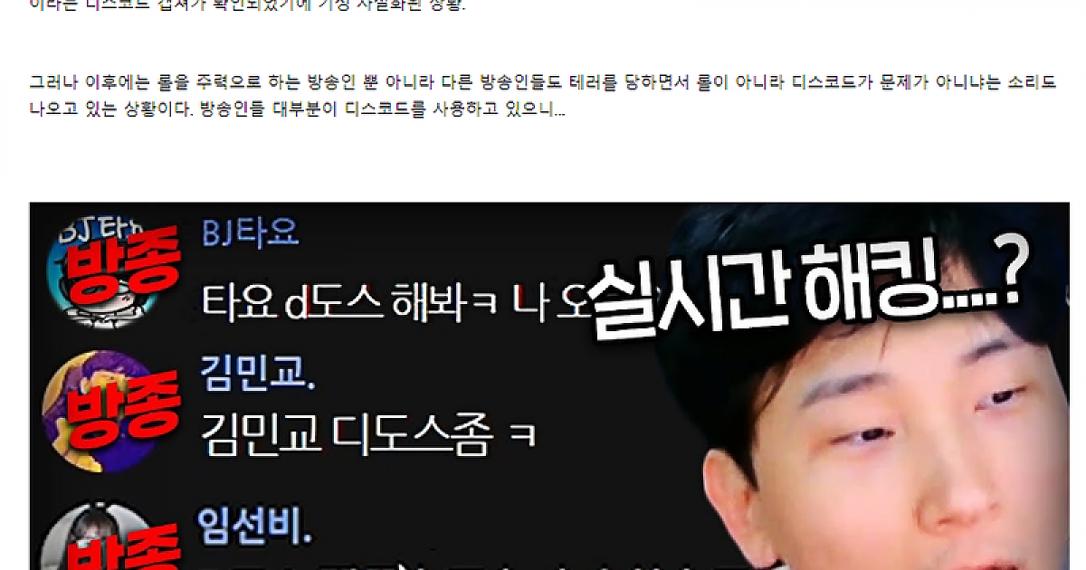 요즘 롤 인방계의 뜨거운 감자 "디도스 테러"