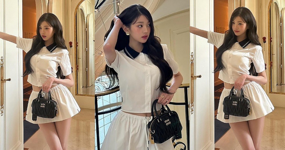 '크롭 셔츠' 의상으로 드러내는 아름다운 몸매의 '장원영'