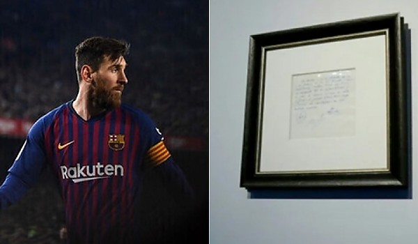 메시의 바르셀로나 입단 당시 화제가 되었던 '냅킨 계약서'의 경매 낙찰가 수준