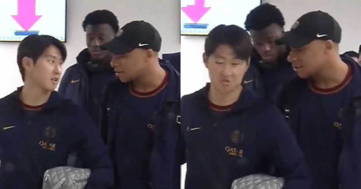이강인의 어시스트 이후 공항에서 포착된 '이강인과 음바페'(영상)