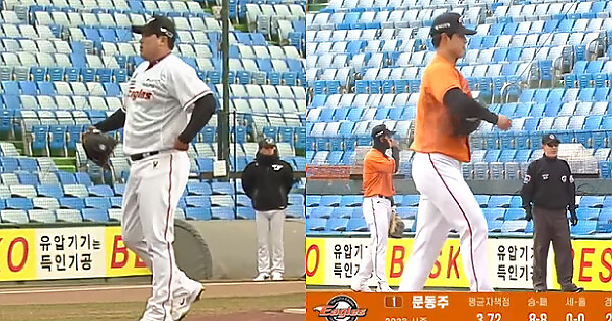 오늘 청백전에 등판한 류현진과 문동주